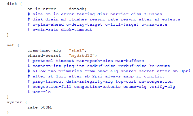 /etc/drbd.d/global_common.conf:提供全局配置,及多个drbd设备相同的配置