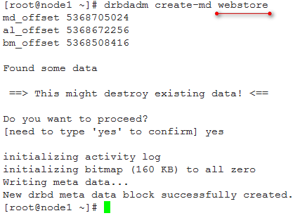 drbdadm create-md webstore