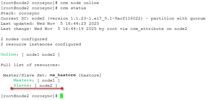 将node2上线,node2状态变为Slave。