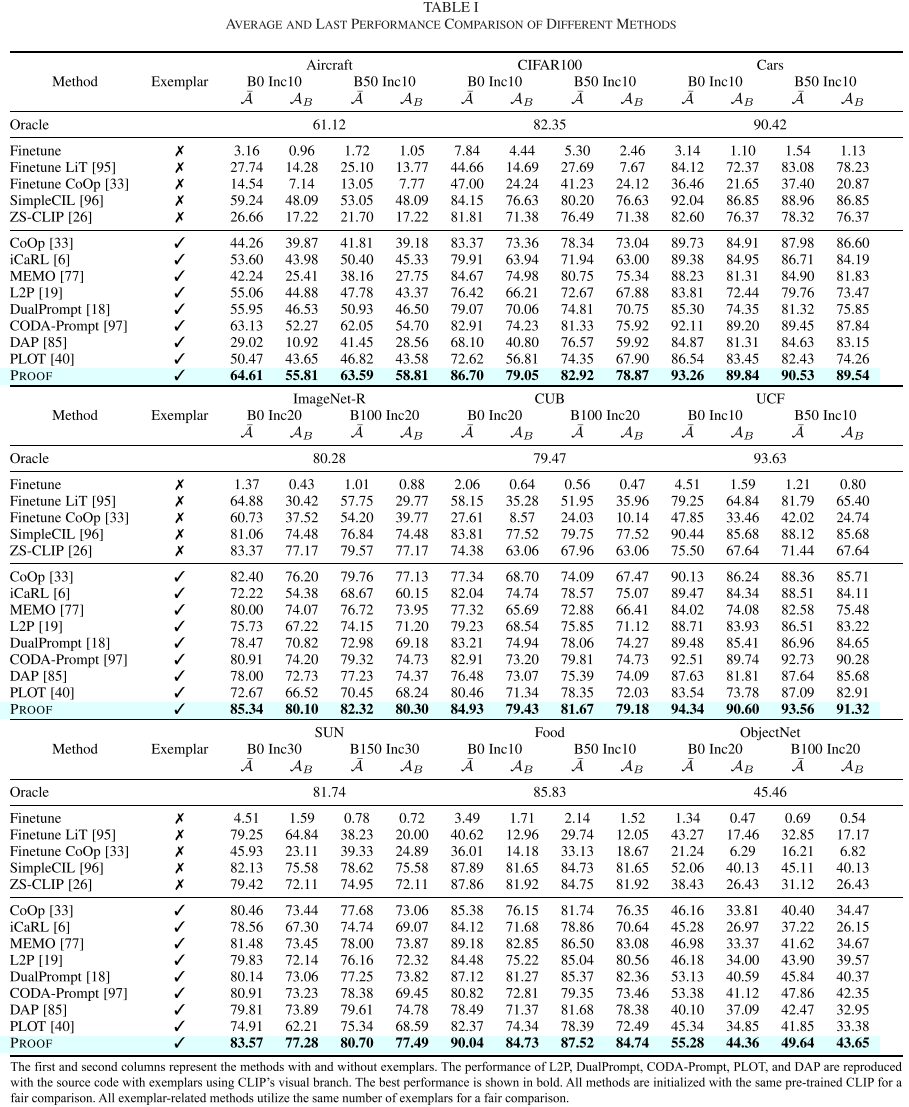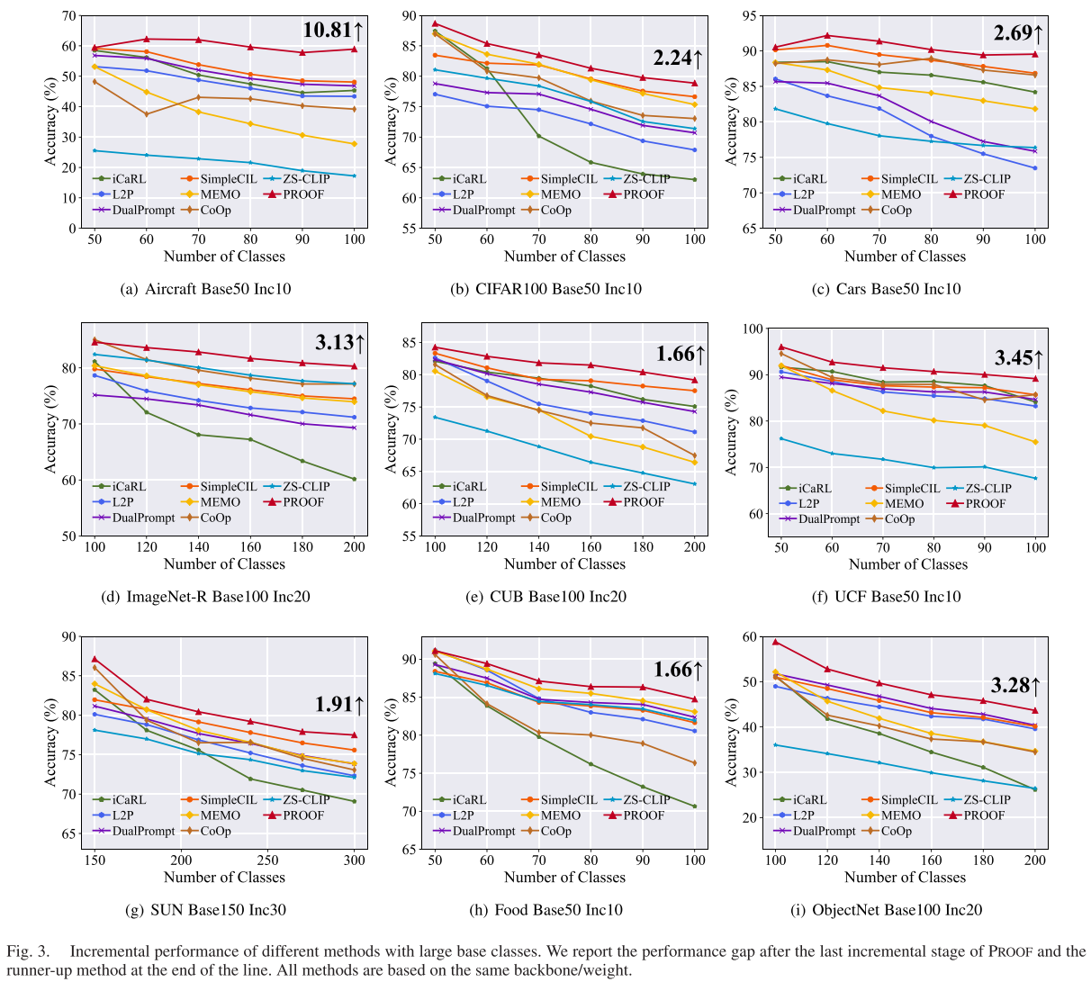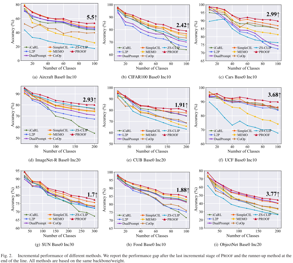 实验数据充分证明了其有效性:在9个基准数据集上全面领先,在非重叠数据集上表现出色,在跨模态检索任务上同样有效。更重要的是,PROOF的设计理念------保持预训练知识的同时渐进式扩展任务特定组件------为未来的持续学习研究提供了宝贵的启示。