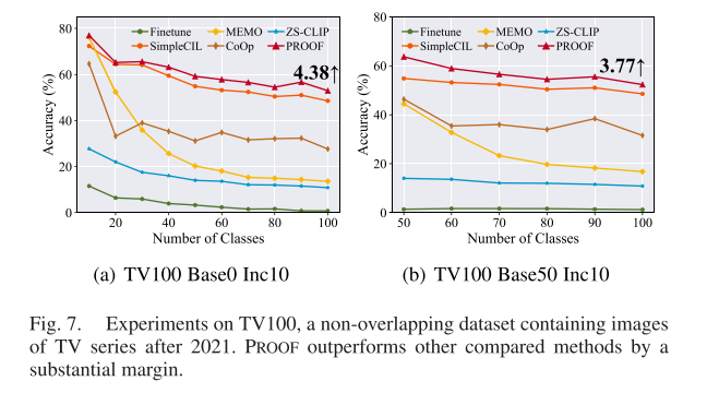 为了验证PROOF在真实世界场景中的表现,研究团队构建了一个特殊的数据集TV100,包含2021年后发布的100部电视剧(CLIP训练数据截止于2021年)。