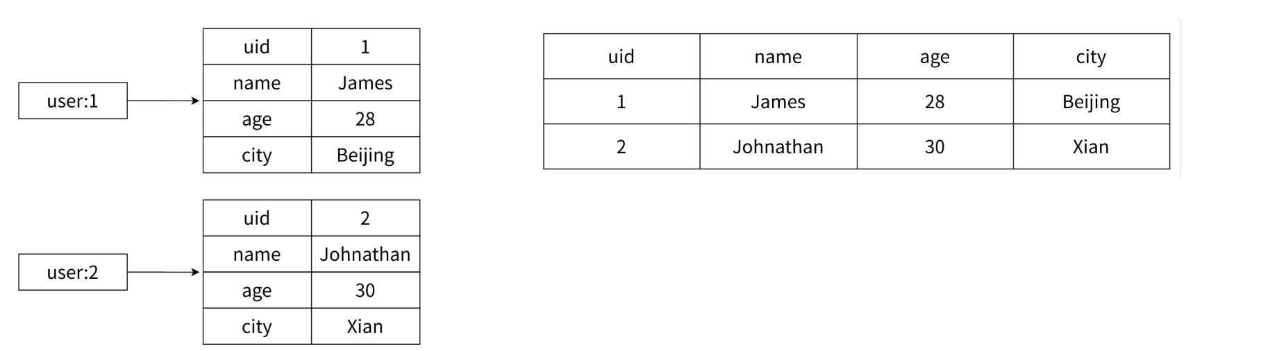 在redis中,string是可以作为缓存使用的,但是存储结构化数据,使用hash类型更合适一些~~