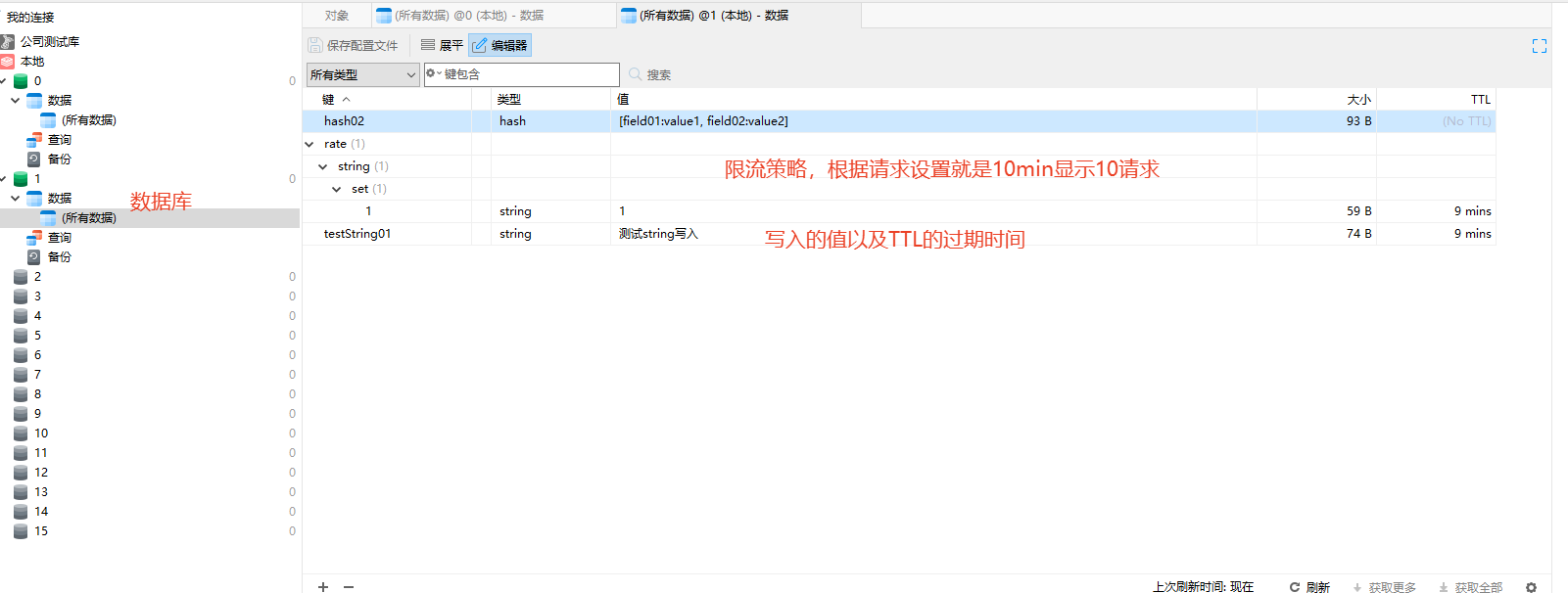 以下包括限流设置,string、hash、set、list、sortedSet 等常用设置