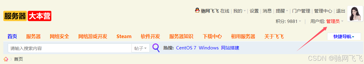 2、登录账号后点击右上角的"管理中心",输入密码进入管理中心页面