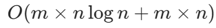 ,其中 m是矩阵的行数,n 是矩阵的列数。对每一行排序的时间复杂度为 O(n log n),共 m 行,排序总时间为
