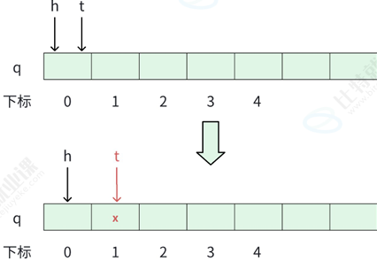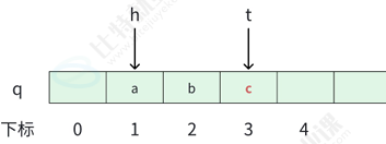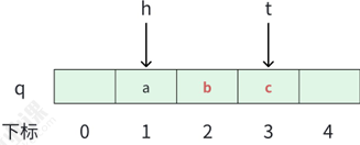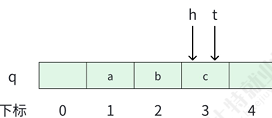 • 一个变量t标记队尾元素的位置。两个变量(h, t] 是⼀种左开右闭的形式,这样设定纯属个人喜好 ,因为后续的代码写着比较舒服。,也以h标记队头元素的位置。只要能控制住代码不出现bug ,想怎么实现就怎么实现。
