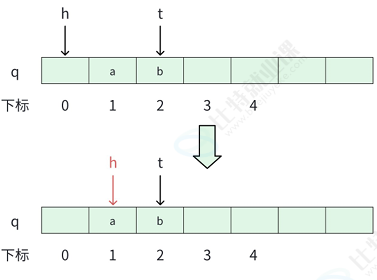 • 一个变量h 标记队头元素的前⼀个位置 ;