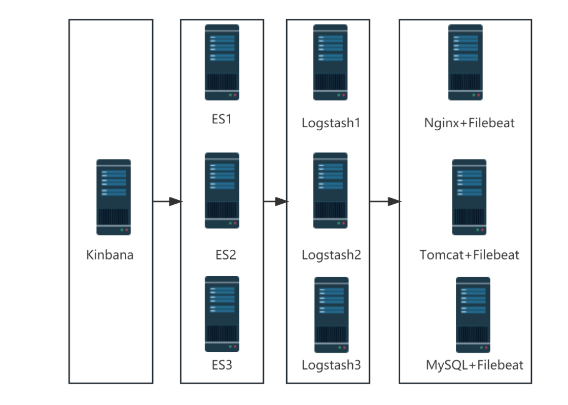 角色 主机名 IP地址 图形展示 kibana 192.168.166.111 日志存储 es 192.168.158.6 日志收集分析 lostash 192.168.166.113 日志采集 access、error 192.168.166.114 说明:以下部署过程为单机模式部署,集群模式请自行修改部署!!!
