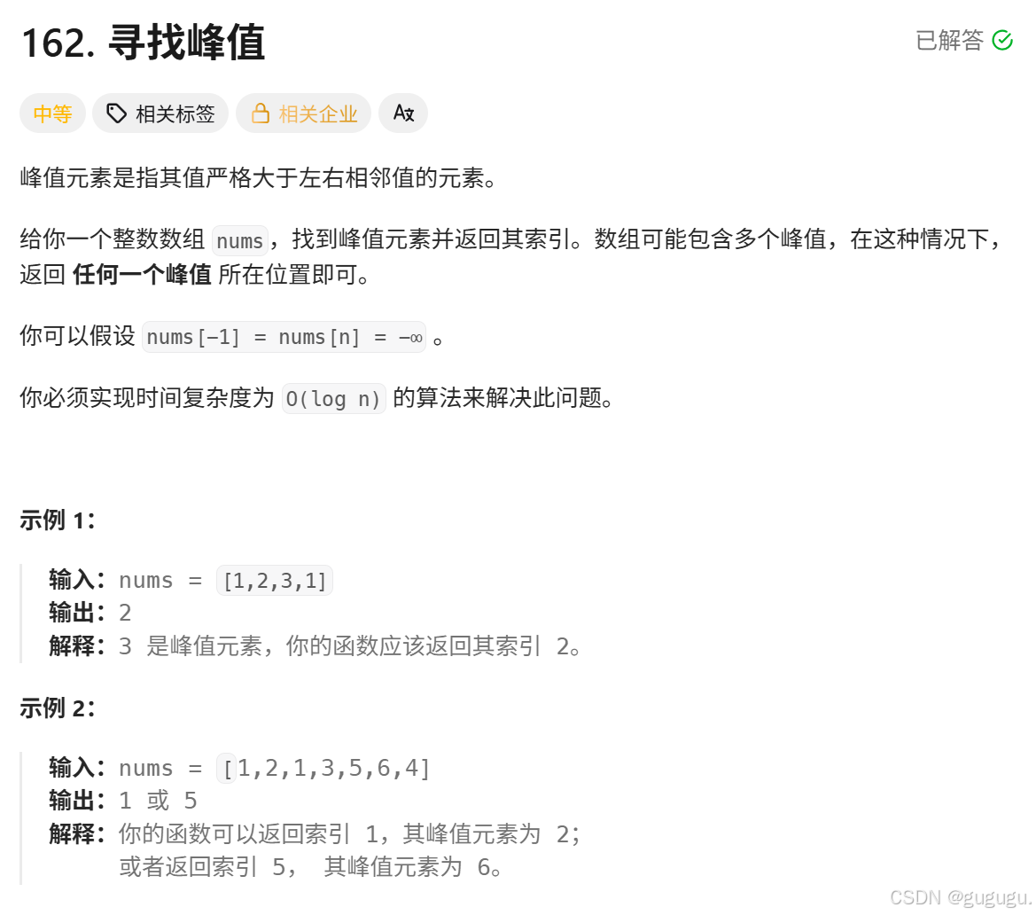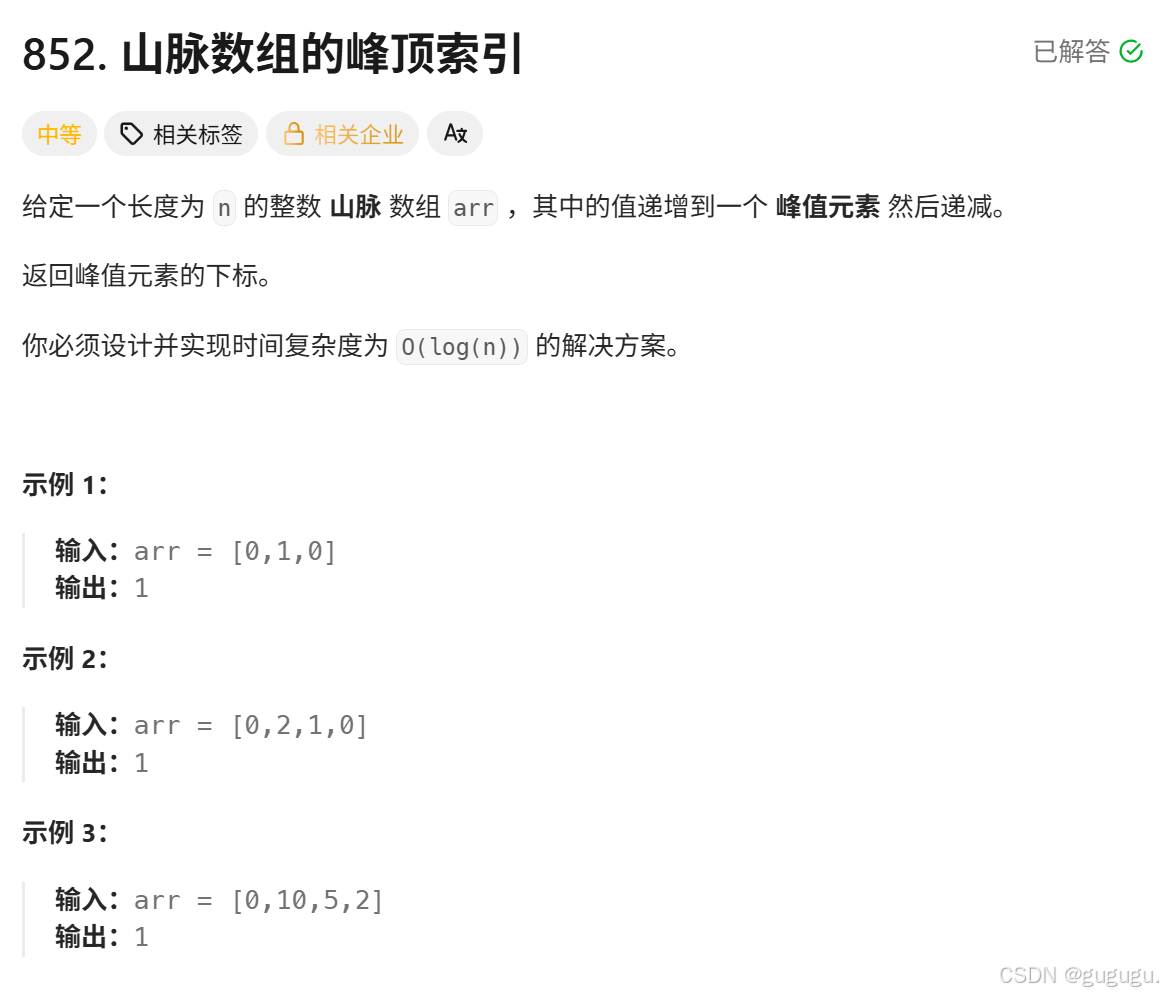 所以,我们可以对0和n - 1的位置的元素特殊判断一下,提前判断是不是山峰索引。
