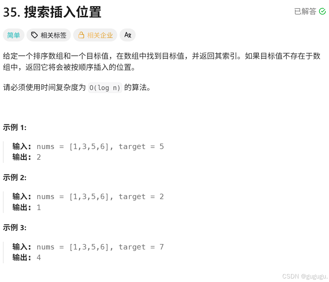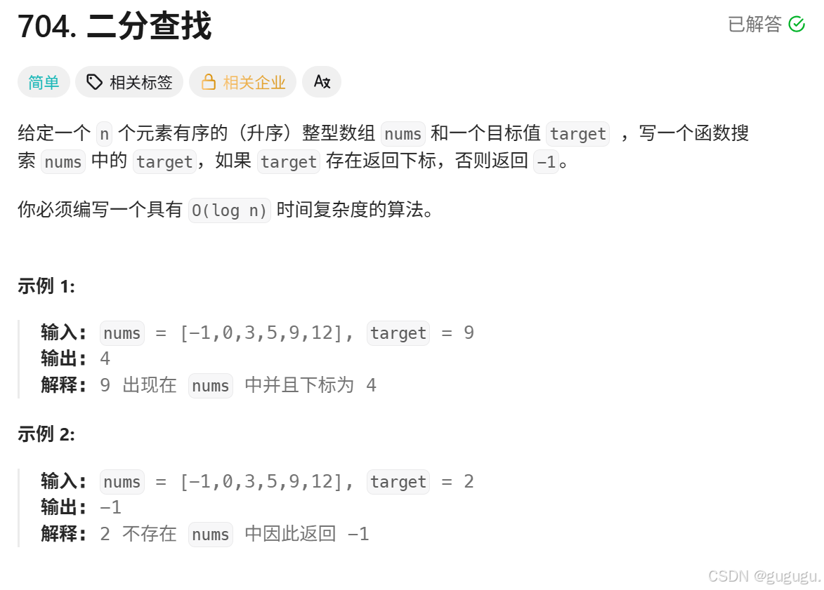 由于数组是升序数组,在有序数组中查找,第一反应就是二分算法,