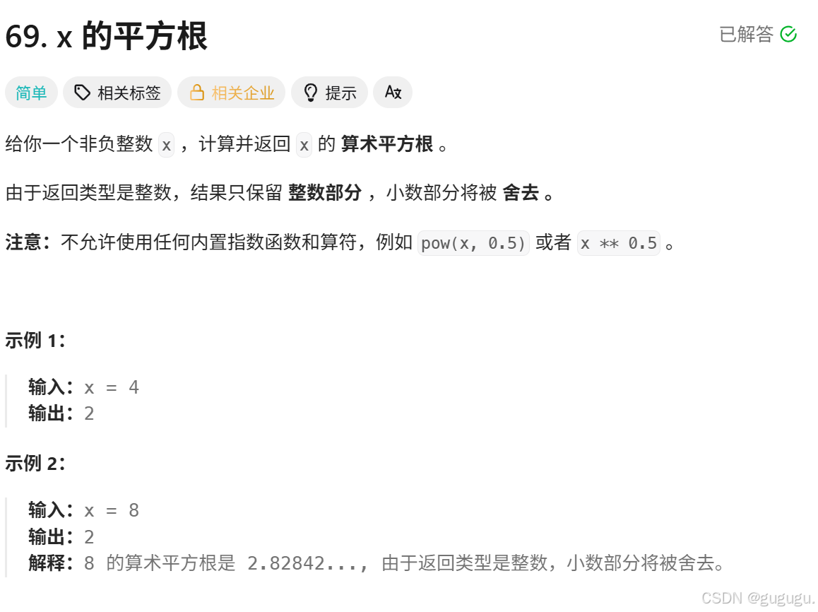 假设平方根是mid,mid左侧的所有的数据的平方都 <= x,右侧的所有数据的平方都 > x,