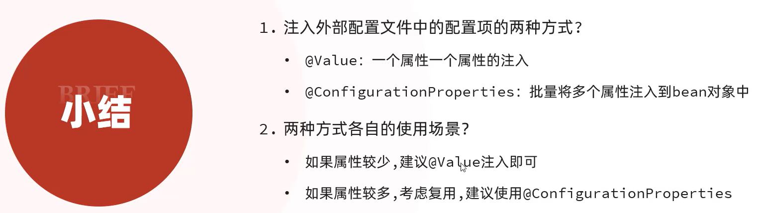 - 将配置项数据配置到实体类中,使用时,直接@Autowire注入Bean即可