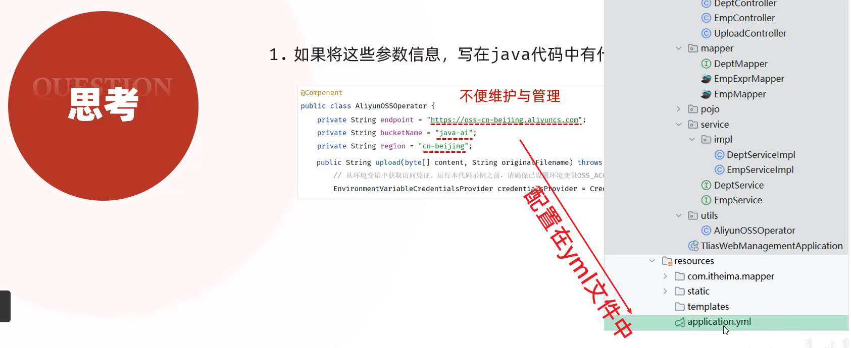 - 这三个信息需要变动,不建议硬编码,将需要变动的信息配置在yml文件中
