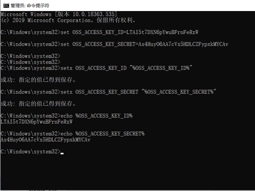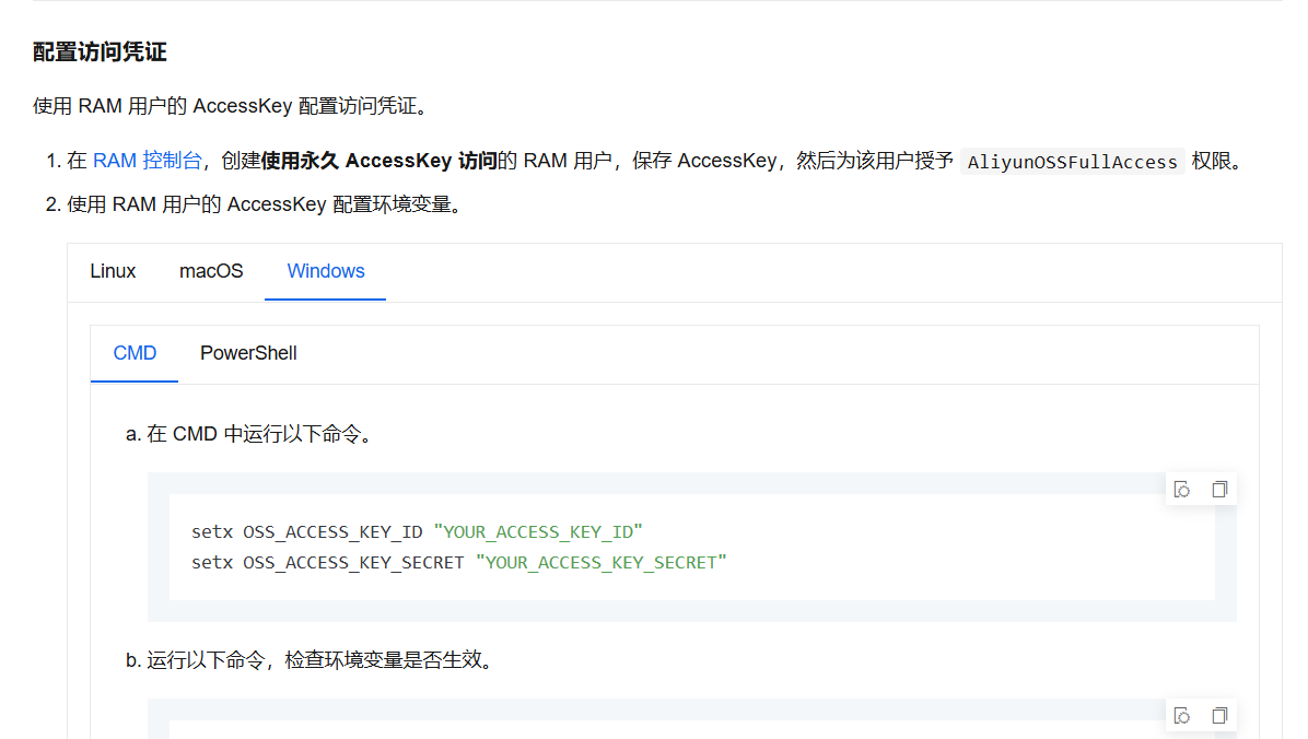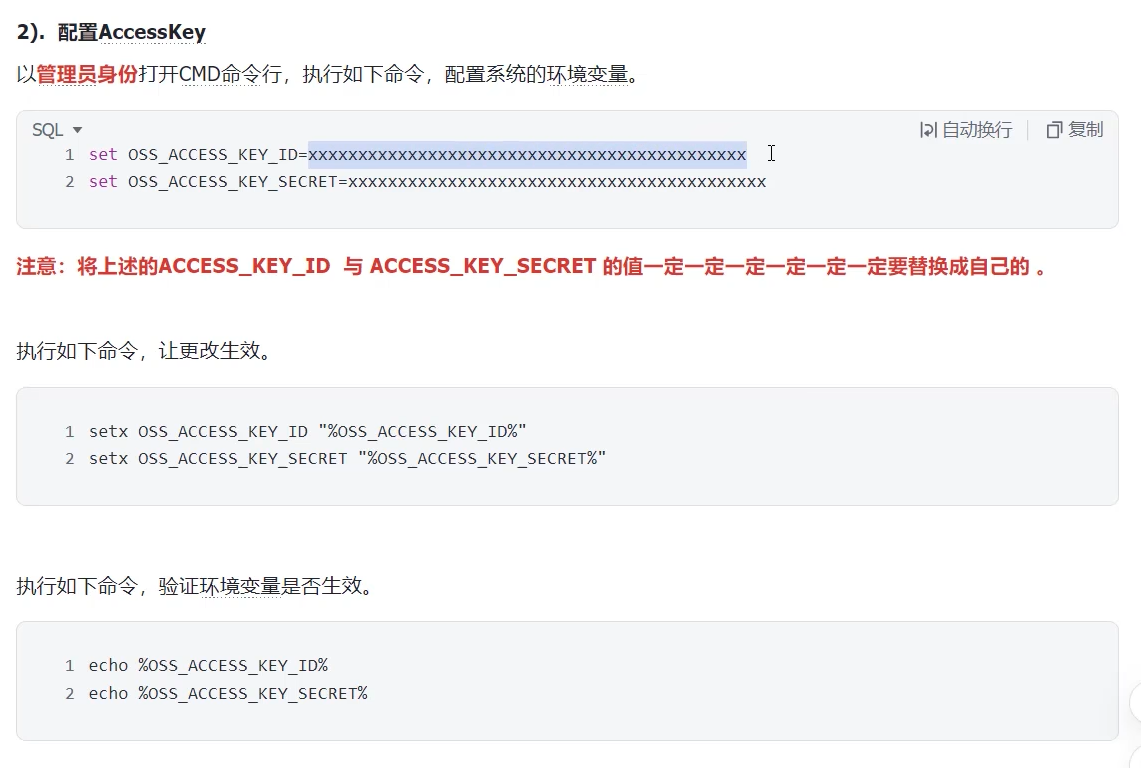 - 代码配置完成之后,需要重启IDEA,否则可能IDEA可能读取不到刚刚CMD里配置的已设置环境变量OSS_ACCESS_KEY_ID和OSS_ACCESS_KEY_SECRET。