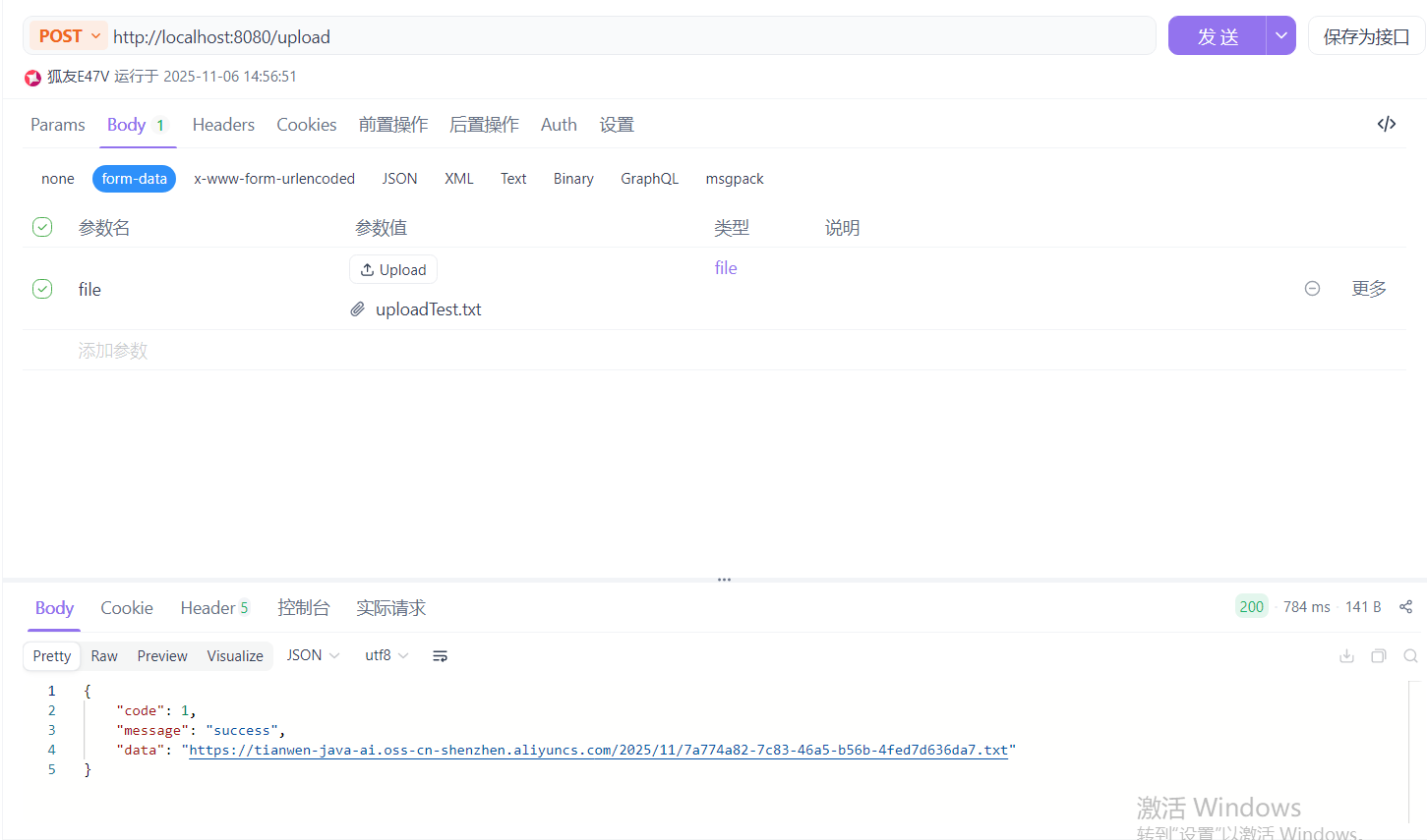 return "文件上传成功,保存路径:" + dest.getAbsolutePath();