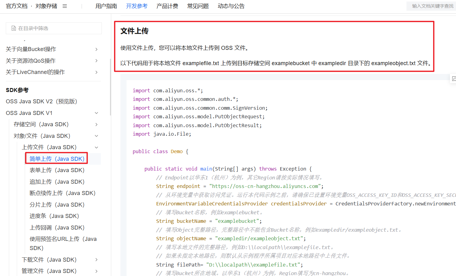 如果未指定本地路径,则默认从示例程序所属项目对应本地路径中上传文件。