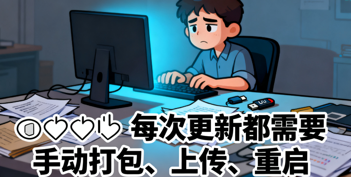- 🤦♂️ 每次更新都需要手动打包、上传、重启;