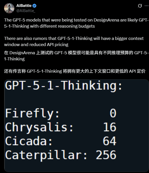 一些内部测试者提到,GPT-5.1 可能引入了一个全新的参数:"思维预算(Thinking Budget)"。