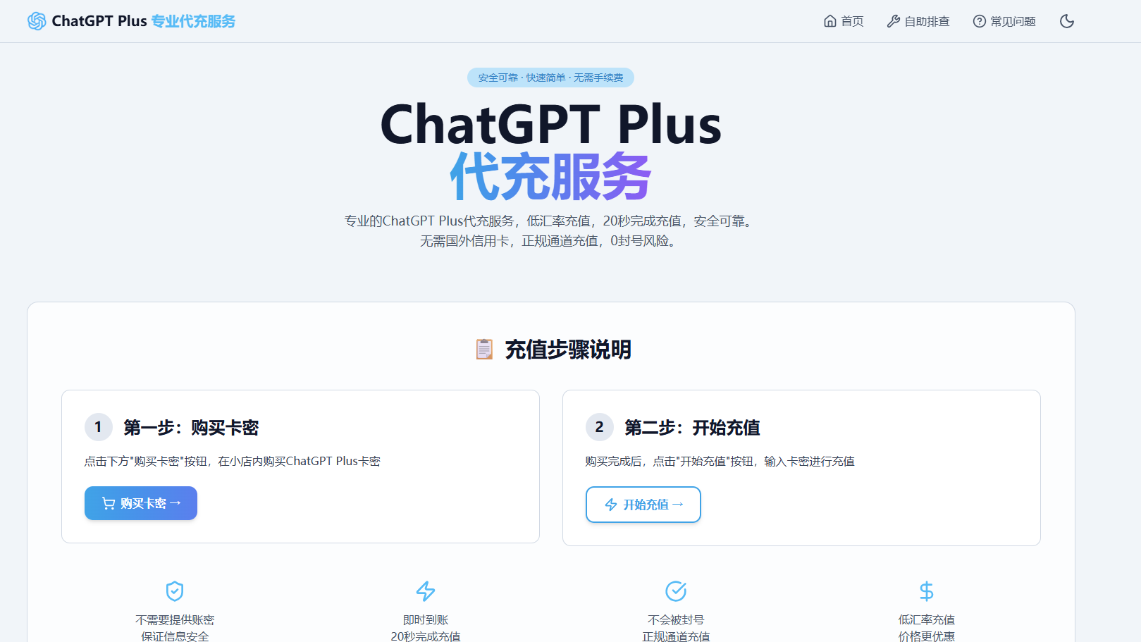 GPT-5.1 正式推出预计也就在这一两周了,按照惯例依旧是优先开放给Plus、Pro用户,如果你还不知道怎么升级ChatGPT Plus会员的话,可以通过我们的 OpenAI 自助代充平台 ,完全不用找代充、也不用担心被骗: