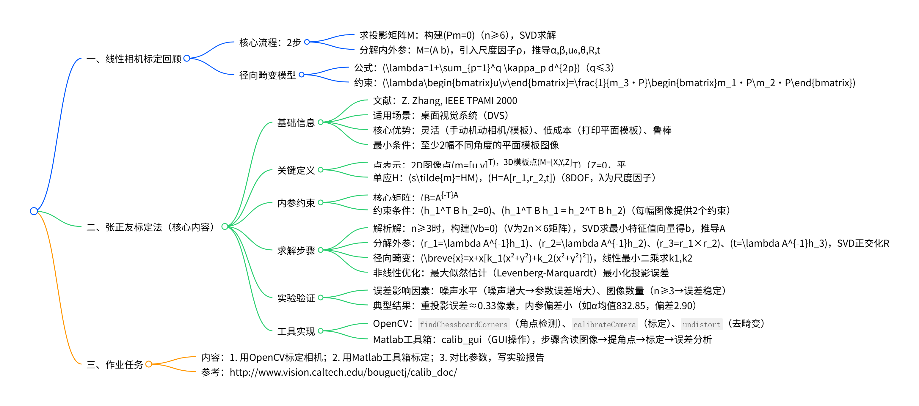 - 灵活性更高 :传统线性标定需高精度3D标定rig(如多控制点的立体标定板),且需固定相机/标定物;张正友方法仅需平面模板(可打印),相机或模板可手动机动,无需精密设备,适配更多场景;