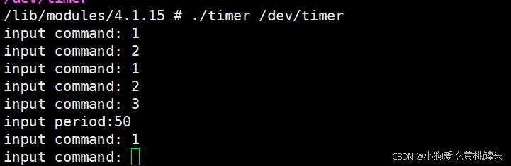 OPEN_CMD:打开定时器命令,调用 mod_timer 函数打开定时器,定时周期为 timerdev 的timeperiod 成员变量,定时周期默认是 1 秒。