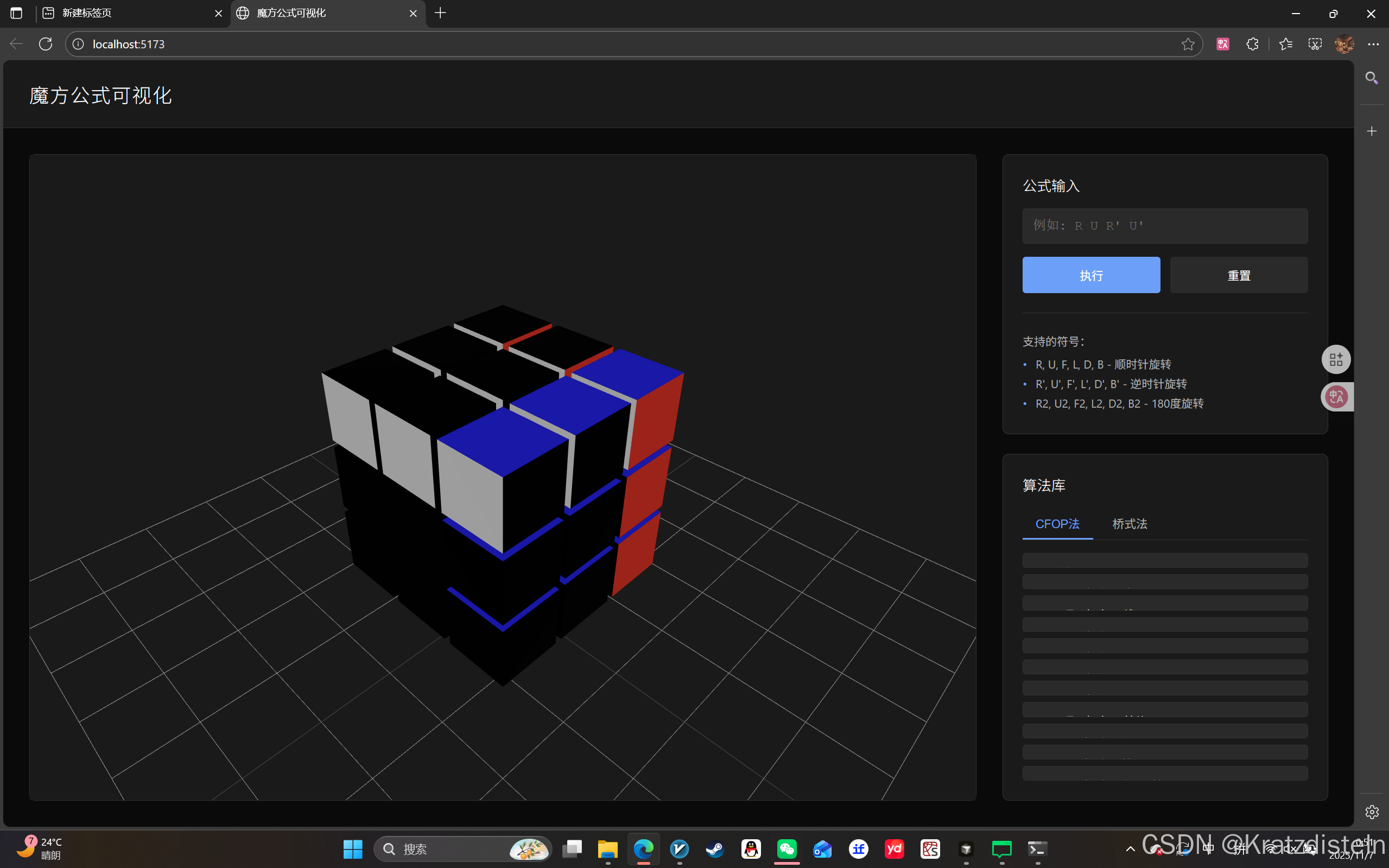 - 左侧有3D魔方模型(可以鼠标拖拽旋转)