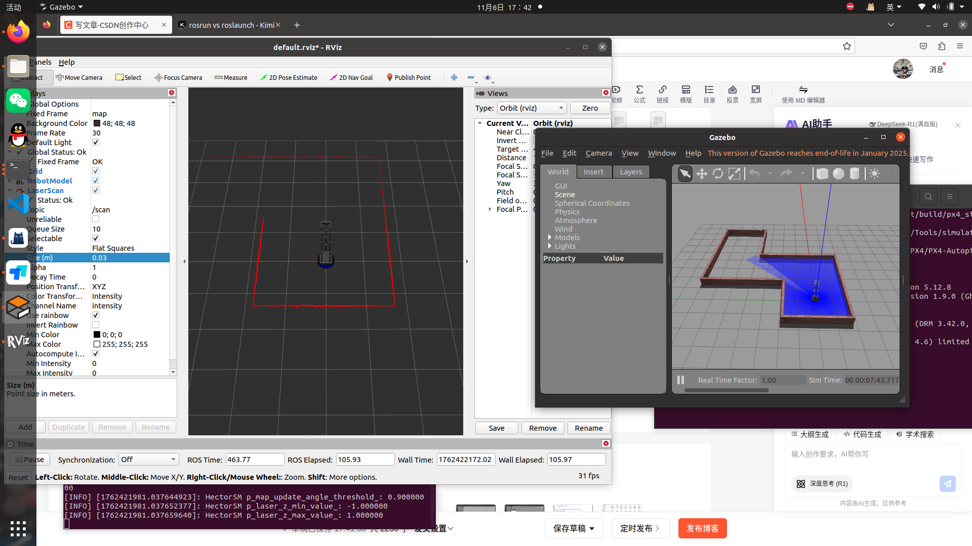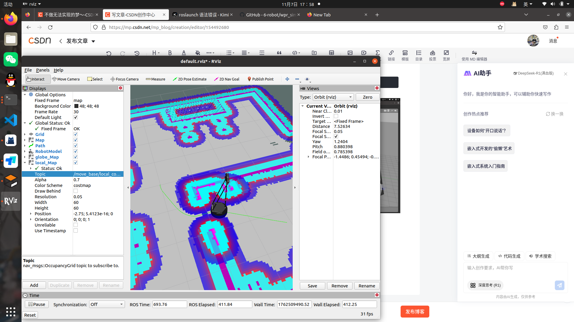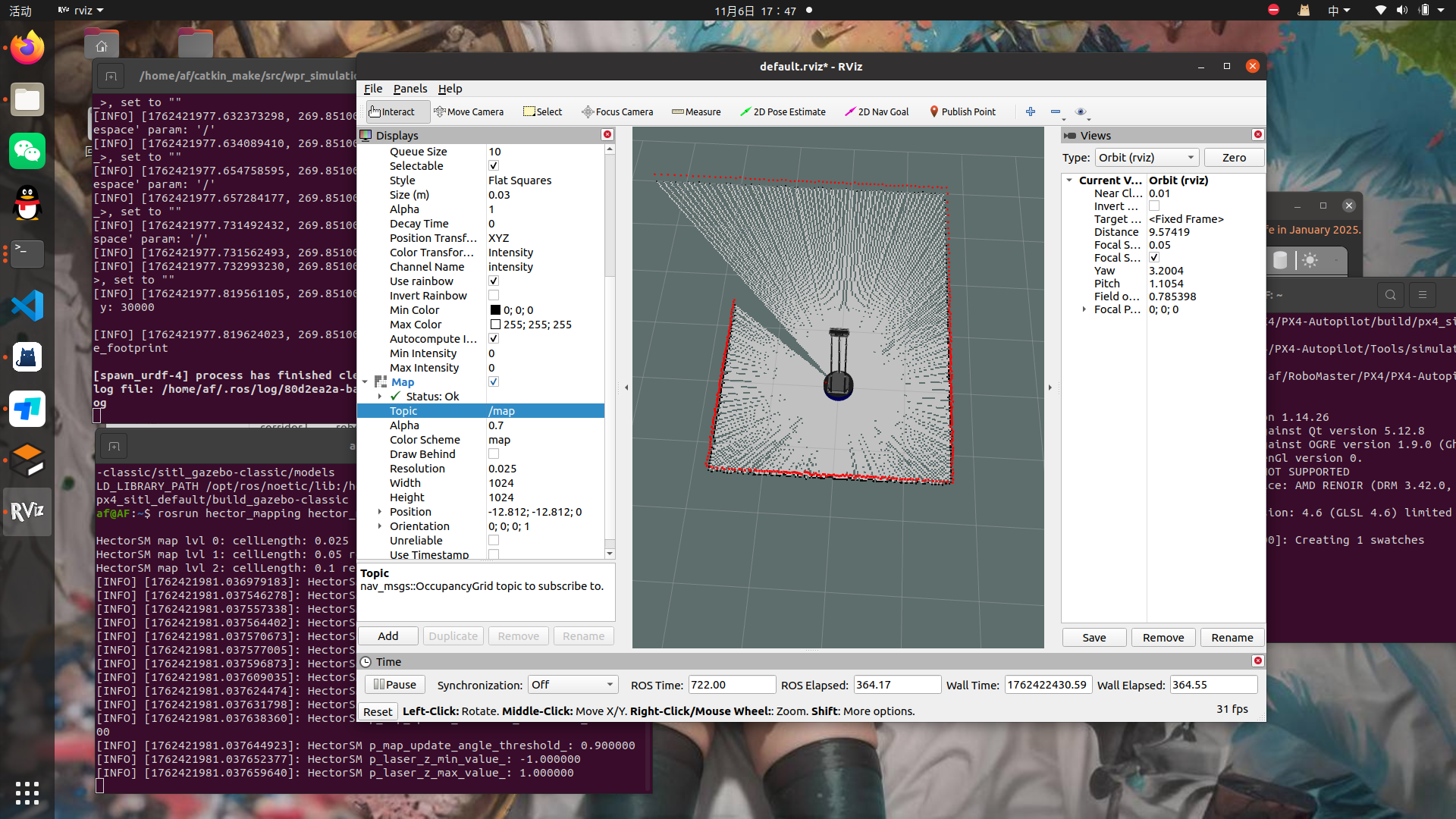 然后就实现了对应的要求,这会有一个问题就是,当机器人起点和rviz显示的不一样的时候,需重新建一个地图