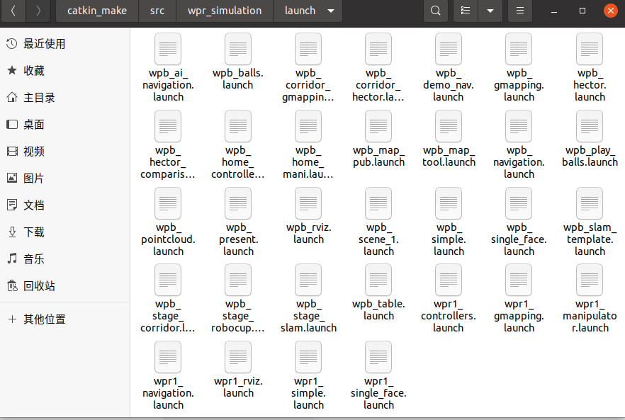 在这里有很多launch文件,不同的launch文件都有不同的功能,也可以自己编写launch文件来自定义功能