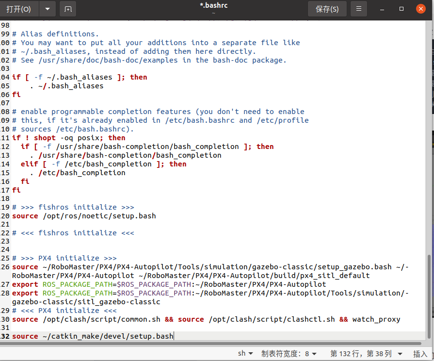 5.把source工作目录添加到主文件目录,这样子就可以每次打开终端就不需要source了