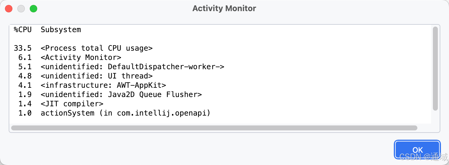 可以使用IDEA自带的监控来观察在IDEA 中到底是啥进程占用了CPU的资源