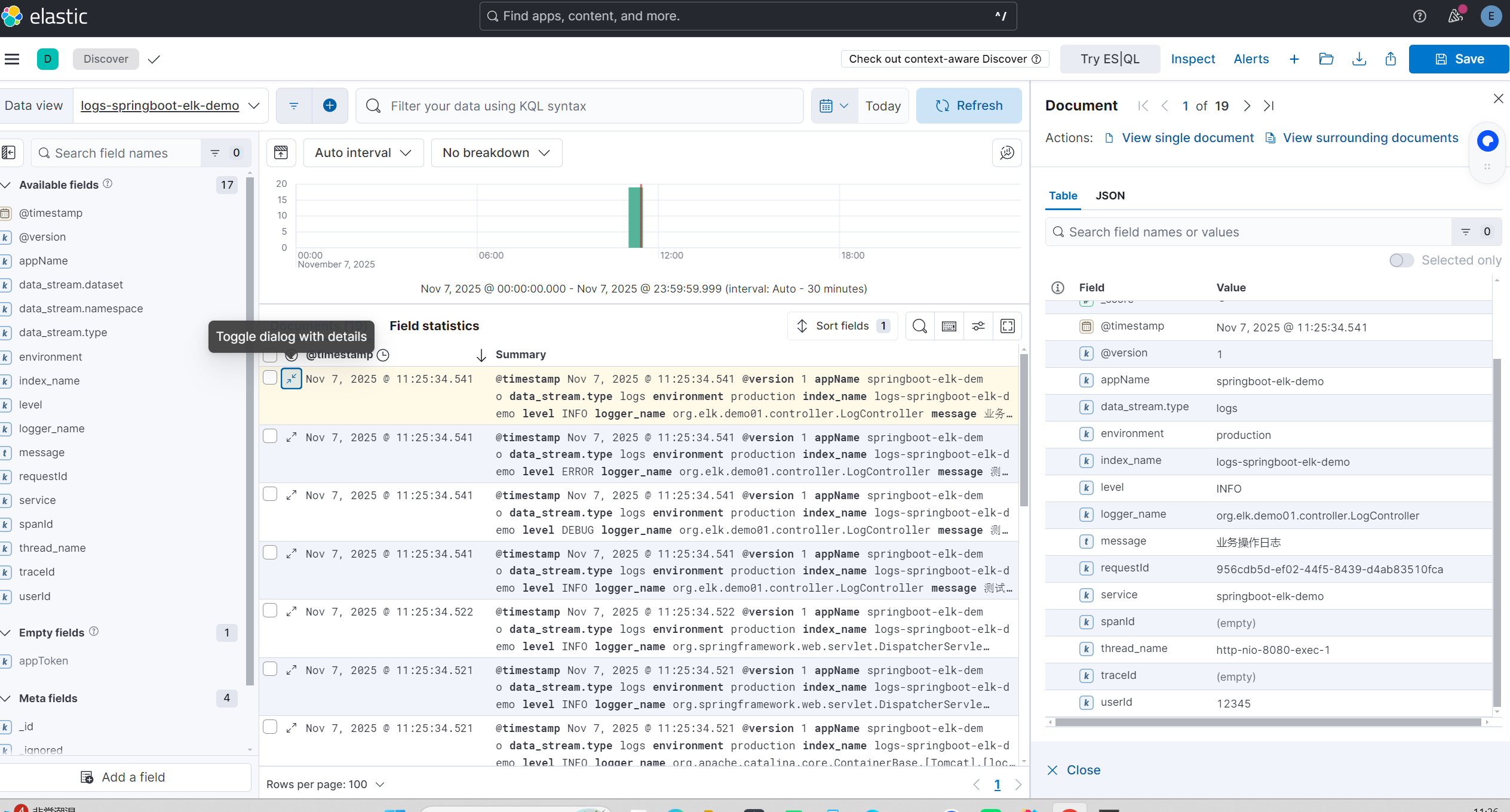 spring: application: name: springboot-elk-demo profiles: active: dev # 开发环境使用 dev,生产环境改为 prod app: logging: token: "AAEAAWVsYXN0aWMva2liYW5hL2tpYmFuYS10b2tlbjpqMU1ZUUM1blFMU3NGOERhQ2xNaXpR" logging: config: classpath:logback-spring.xml level: org.elk.demo01: DEBUG