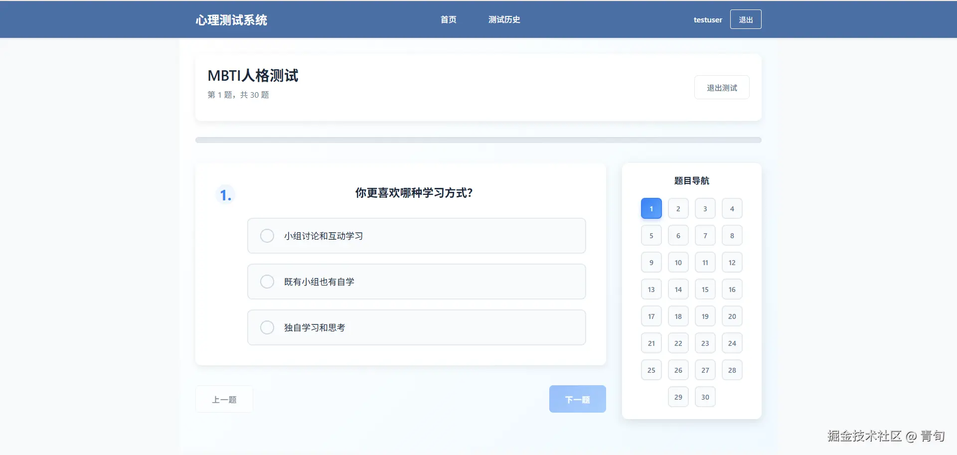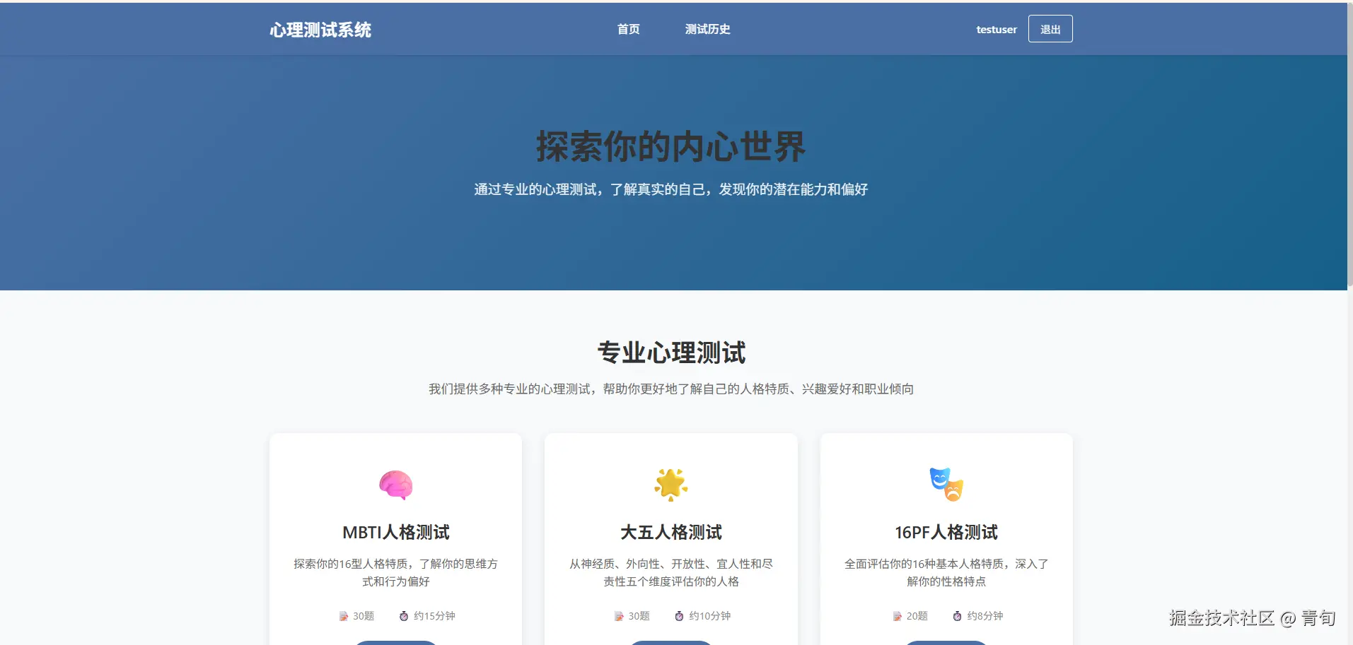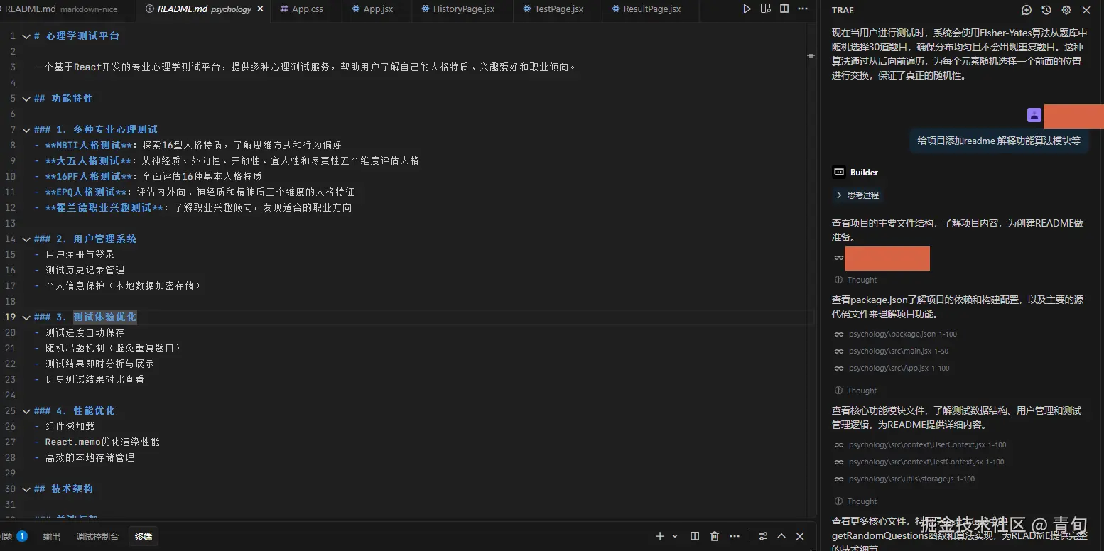 最近还用TRAE.CN生成了一个简单的心理测试网站 ------ 毕竟网上很多测试工具,测完不花钱就不让看分析结果,自己做一个反而方便。