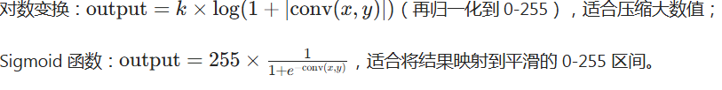 - 原理:在设计卷积核时,通过调整权重确保卷积结果天然落在 0-255 范围内。例如: