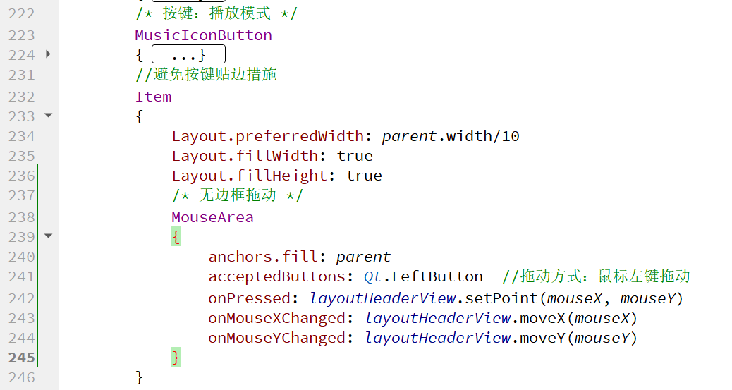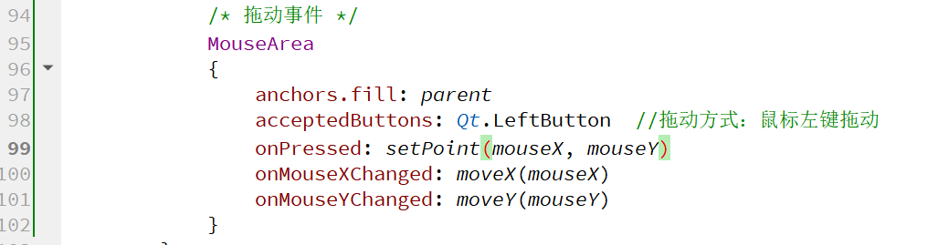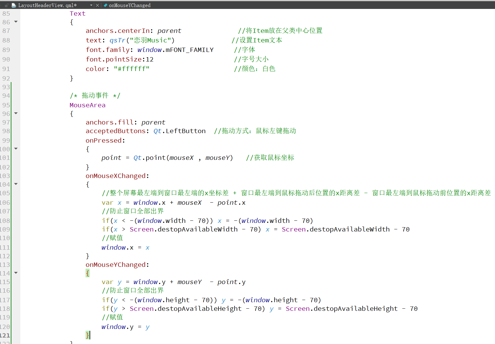 (3)在Item组件"恋羽Music"的鼠标拖动事件: