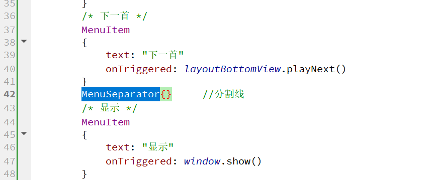 ⑥在下一曲和显示之间添加分割线添加分割线MenuSeparator{}: