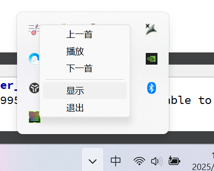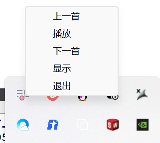 打开系统托盘,可以看到我们做的音乐播放器: