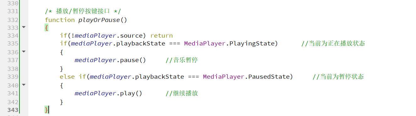 在LayoutBottomView.qml中将播放/暂停封装为函数接口: