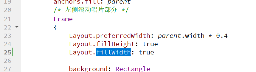 给定左边唱片部分的fillWidth属性,以便去掉右边歌词部分后,此部分能够自动伸缩: