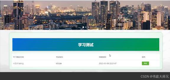 学习测试:在学习测试页面可以查看学习测试名称、考试时长、创建时间等信息,并进行考试操作;党建要闻页面如图5-7所示: