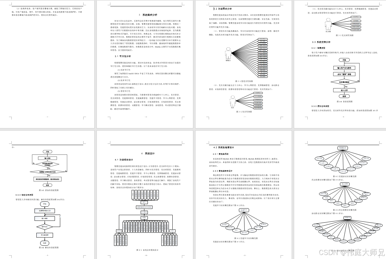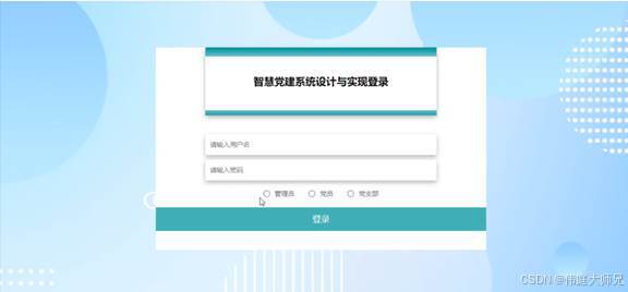 智慧党建系统采用B/S架构,并采用Java语言以及Springboot框架进行开发。本系统主要设计并完成了用户登录管理过程、个人信息修改、对党员管理、党支部管理、党建要闻管理、党建地图管理、党建学习管理、学习心得管理、党费缴纳管理、党建活动管理、活动报名管理、问卷调查管理、问卷回答管理、民主投票管理、投票信息管理、试题管理、学习测试管理、系统管理、考试管理等功能进行管理。该系统操作简单,界面设计简单,不仅能基本满足目前智慧党建管理的日常管理工作,而且能有效降低人员成本和时间成本,为智慧党建管理工作提供方便。