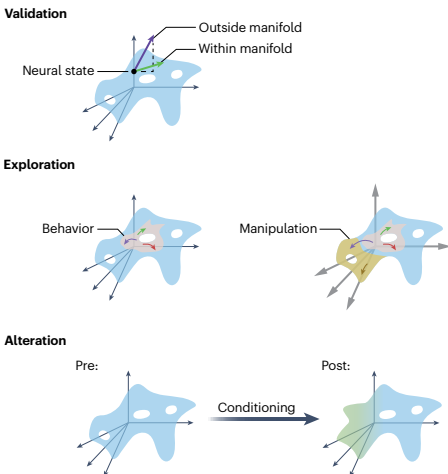探索:实验者探查现有流形内可能的神经状态,以及该流形如何约束未来或未观察到的活动