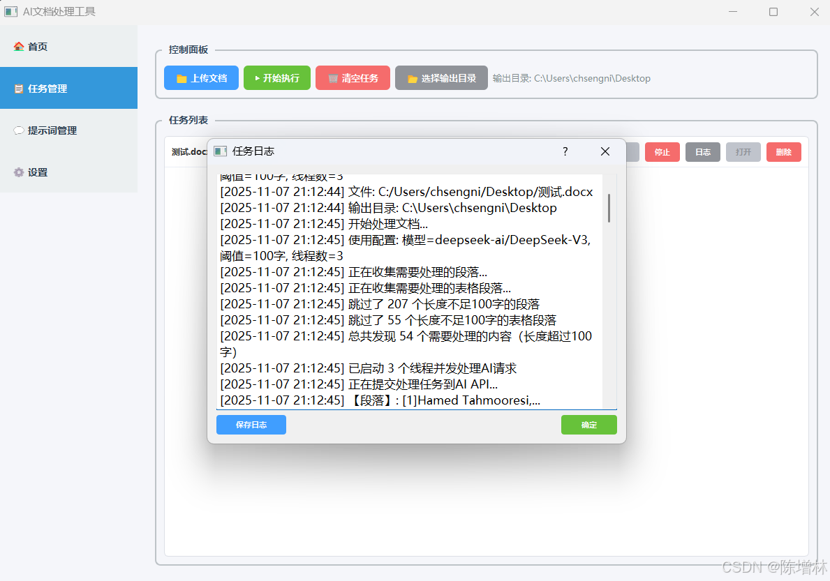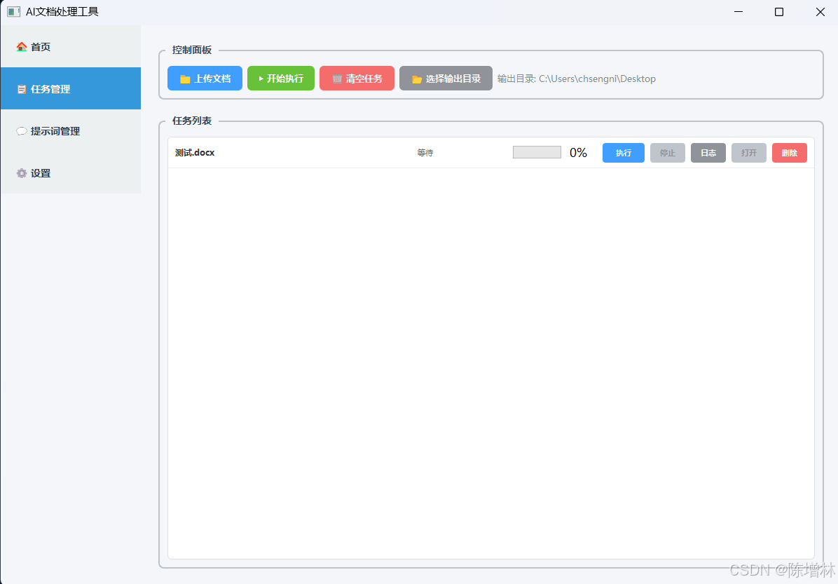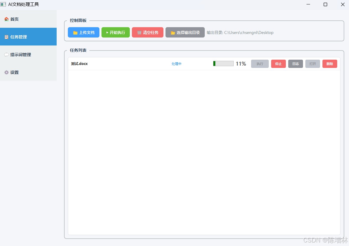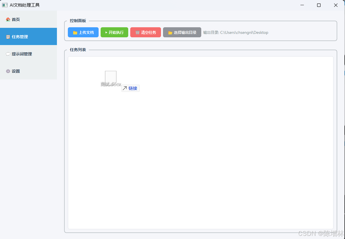 任务管理模块是AI文档处理工具的核心,它允许用户上传文档并执行处理任务。