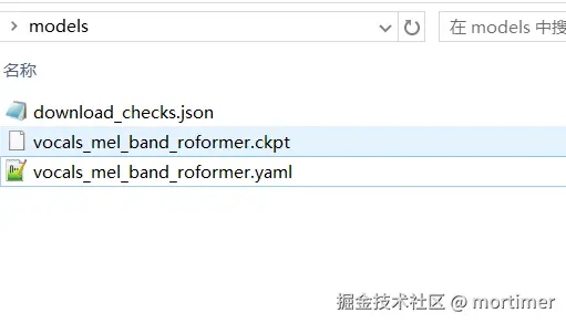 models文件夹:- 主模型 : vocals_mel_band_roformer.ckpt