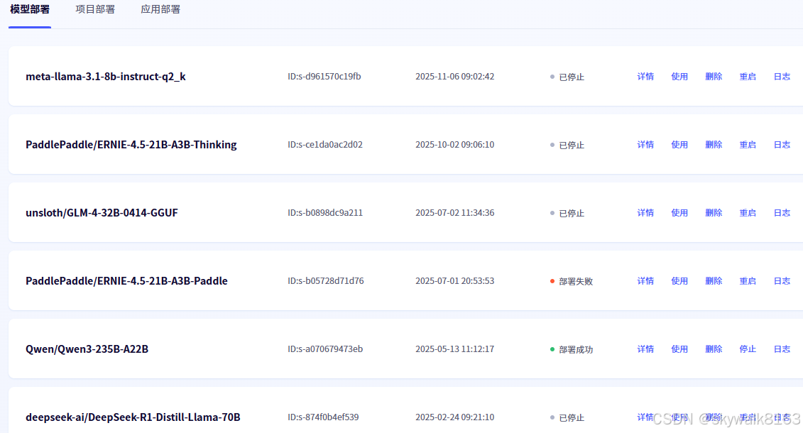 星河社区可以部署模型,比如文心4.5-21b、Deepseek r1 70b、llama 3.1 8b