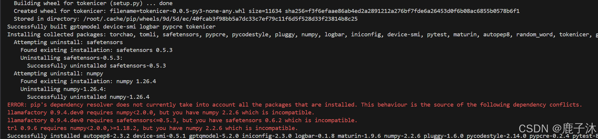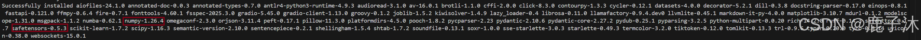 最后安装成功时:numpy-1.26.4, safetensors-0.5.3, bitsandbytes-0.43.2