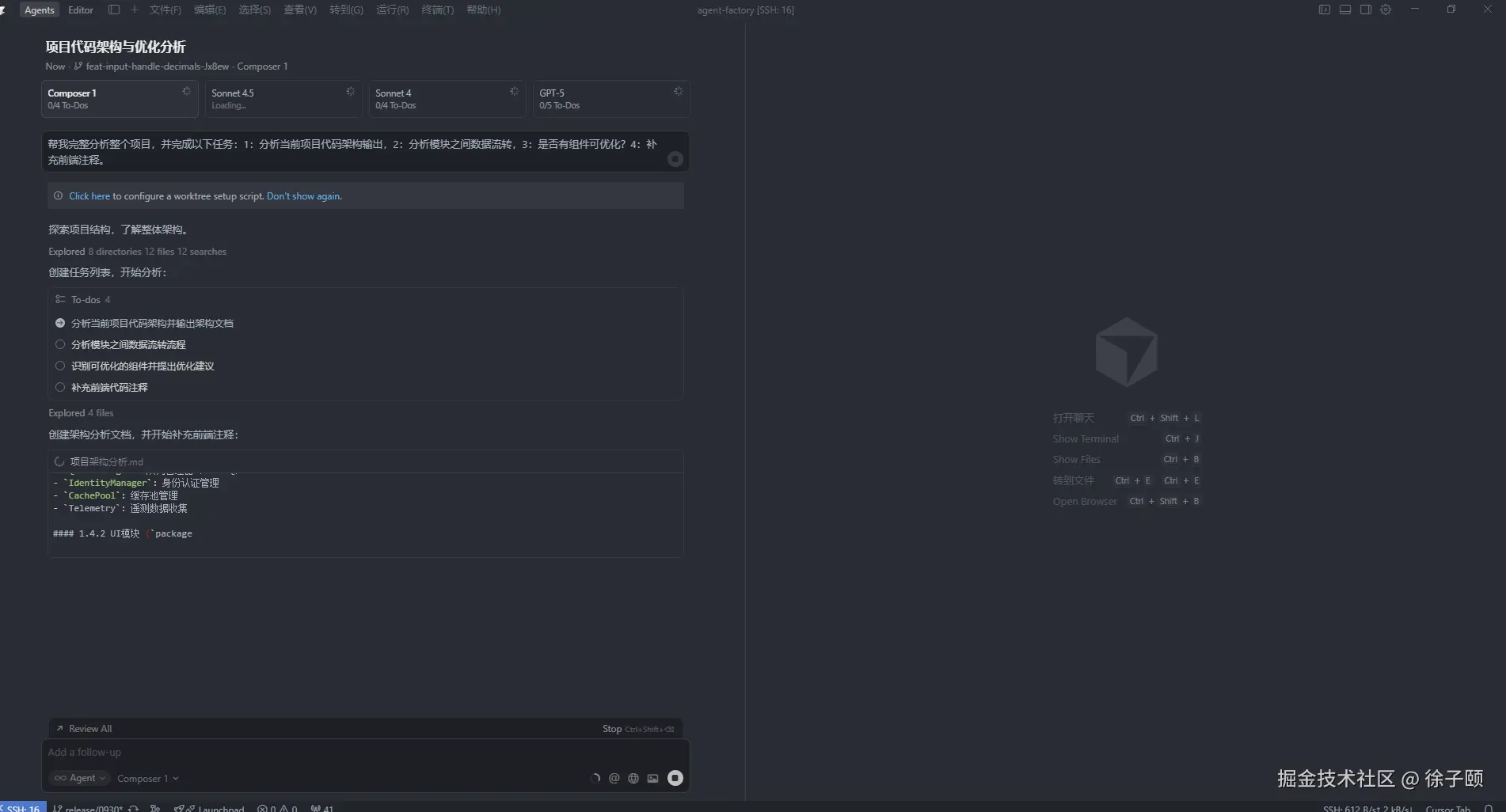 | 多任务/多模型协作 | Agent 架构强调分工、多 agent、多工具调用 | Cursor2.0 支持多 Agent 模式、后台 Agent &工具调用 | 能支撑复杂、长期任务 | 在"不同 agent 专职 +生态工具链整合"上可能还在扩展中 |