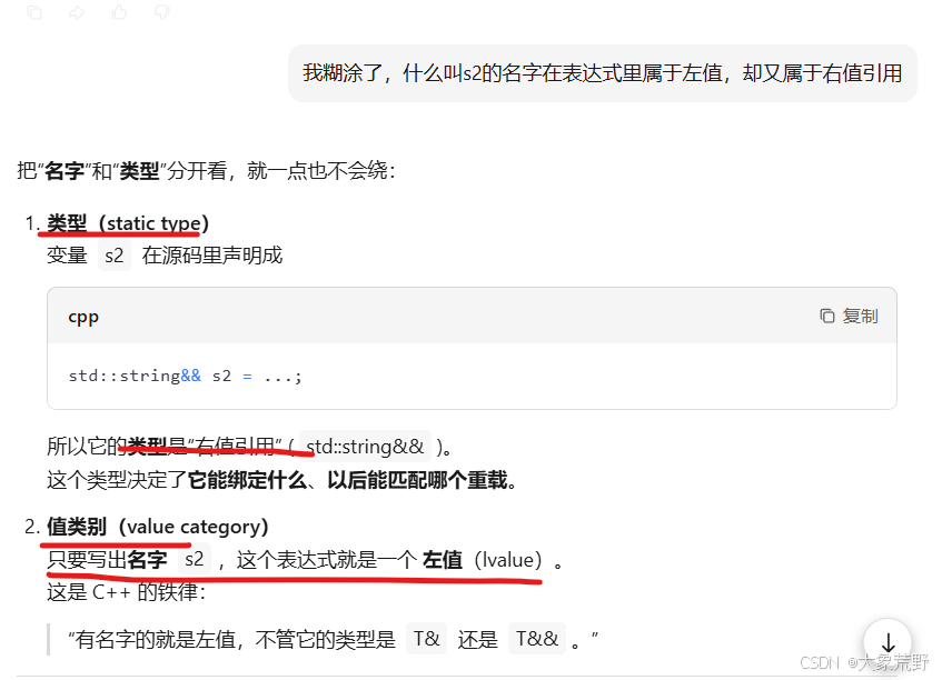 s2 的类型是 string&&,可以绑定到移动构造函数 |