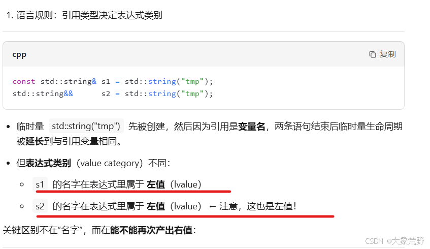 const std::string& s1 = std::string("tmp"); // 左值引用 const 也能延长临时量