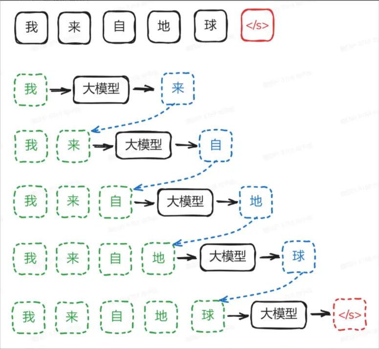 LLM,即大语言模型,本质上是一个"token 接龙"高手,它不断预测下一个词符。这种推理生成方式被称为自回归模型,因为模型的输出会作为下一轮的输入,形成一个循环。