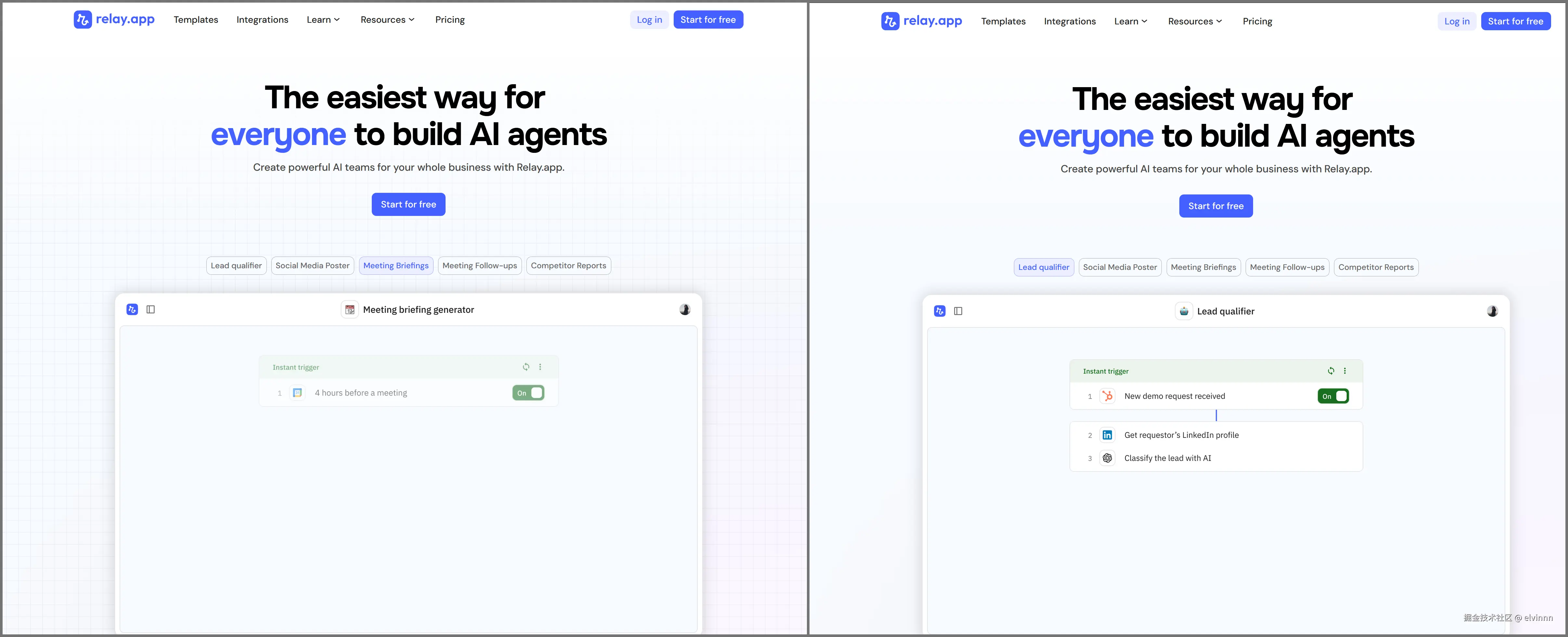 最近发现不少开发类的网站都在首页使用上了重复格子的背景,例如下图中左侧以 relay.app 为例子的截图。